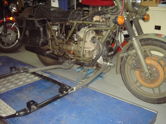 Aangezien deze Moto Guzzi type’s een zwakke achtervork-lagering hebben, kun je het best een zwenk zijspan monteren.